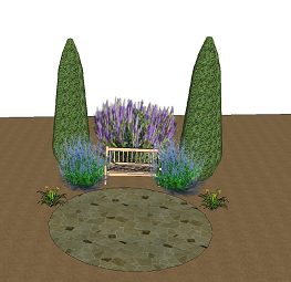 משני צדדיו של הספסל יש אותם צמחים וסדר בדיוק ומעין תמונת - מראה שווה וכך נוצר שווי-משקל ויזואלי: